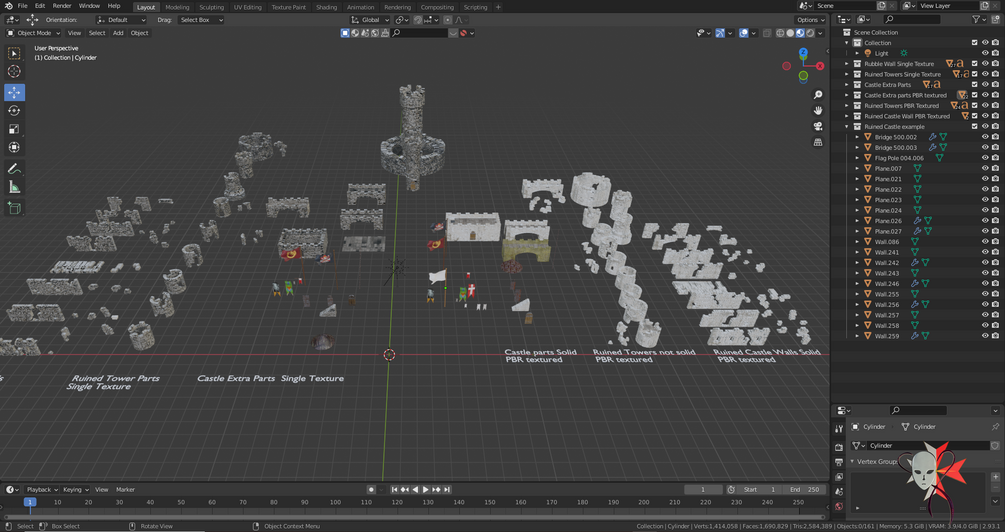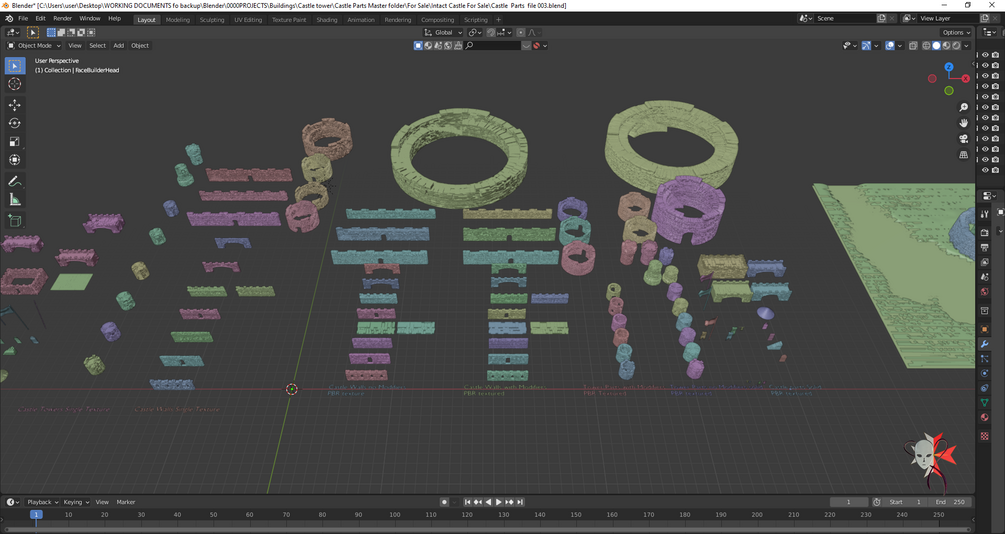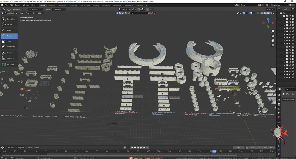Ruined Castle Kitbash Set 153 parts 3D model