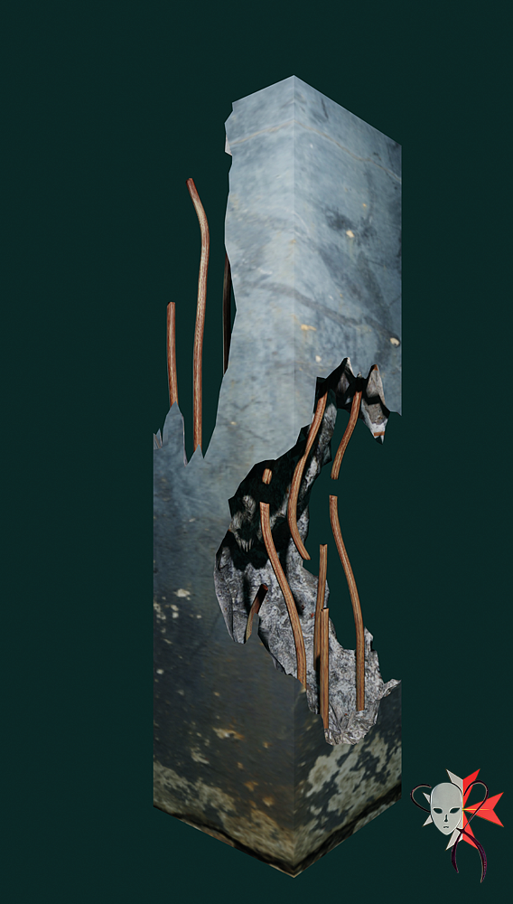 Included in the file is a deformable pillar from which you can create as many custom pillars as you want. The pillar consists of;1 main pillar,1 main metal rod which can be duplicated and deformed to replicate the iron supports present in each concrete pillar.