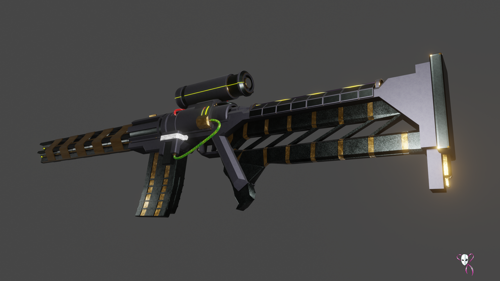 A low-ploy, PBR textured Sci-fi Gun can be used as a shotgun or rifle in any kind of Sci-Fi background for your background, renders, apps, games, etc.